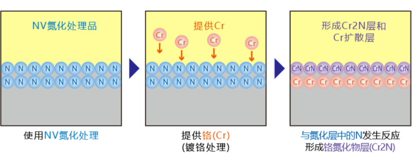 通过NV氮化处理形成的氮化层与铬 (Cr) 反应,